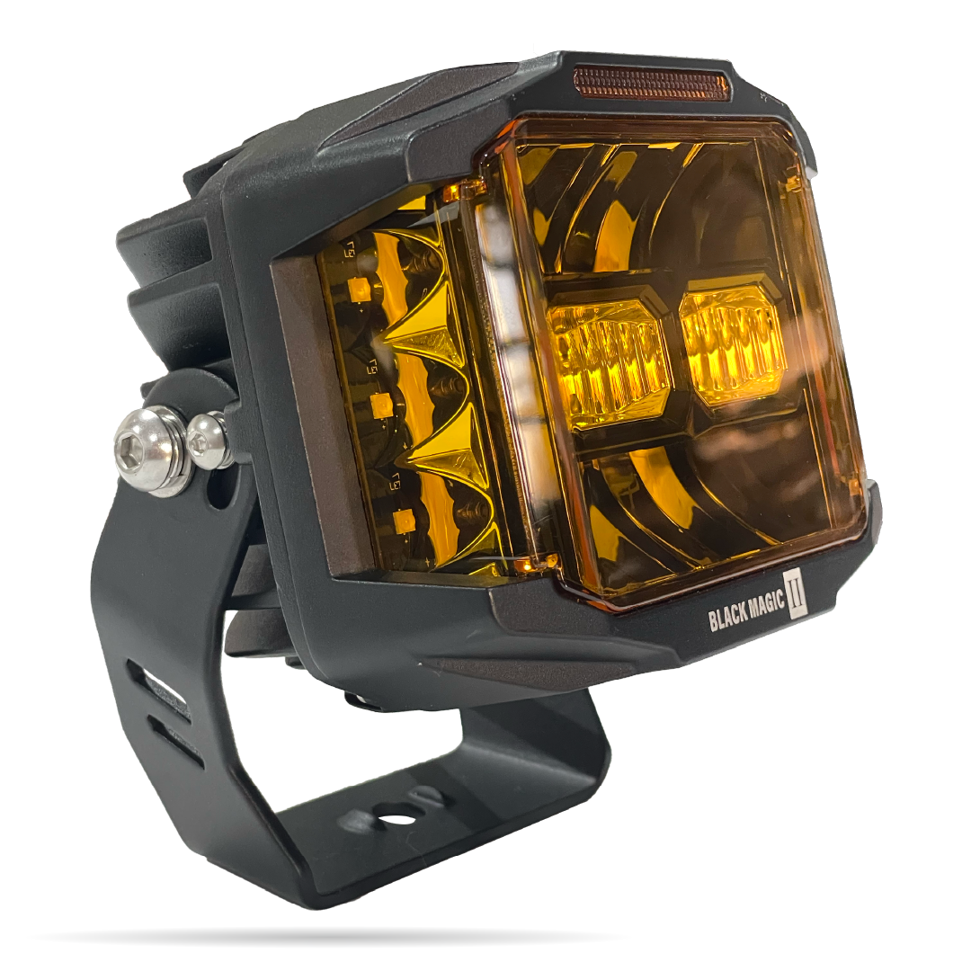 Exploradoras Black Magic II con iluminación blanca y filtros amarillos que aumentan el contraste y reducen el deslumbramiento. Perfectas para pilotos que requieren un rendimiento superior y mayor seguridad en cualquier camino.