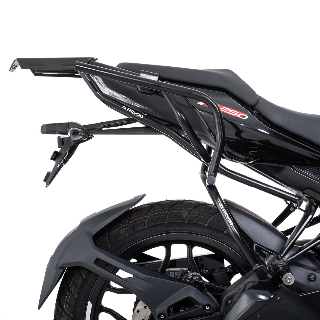 Parrilla trasera compatible con Pulsar N160 y N250, diseñada para la instalación de maleteros de forma segura y estable. Construida con materiales resistentes, soporta el peso del equipaje sin comprometer la estructura de la moto. Se adapta al chasis original, permitiendo una instalación rápida y sin modificaciones. Ideal para viajes, reparto o uso diario.